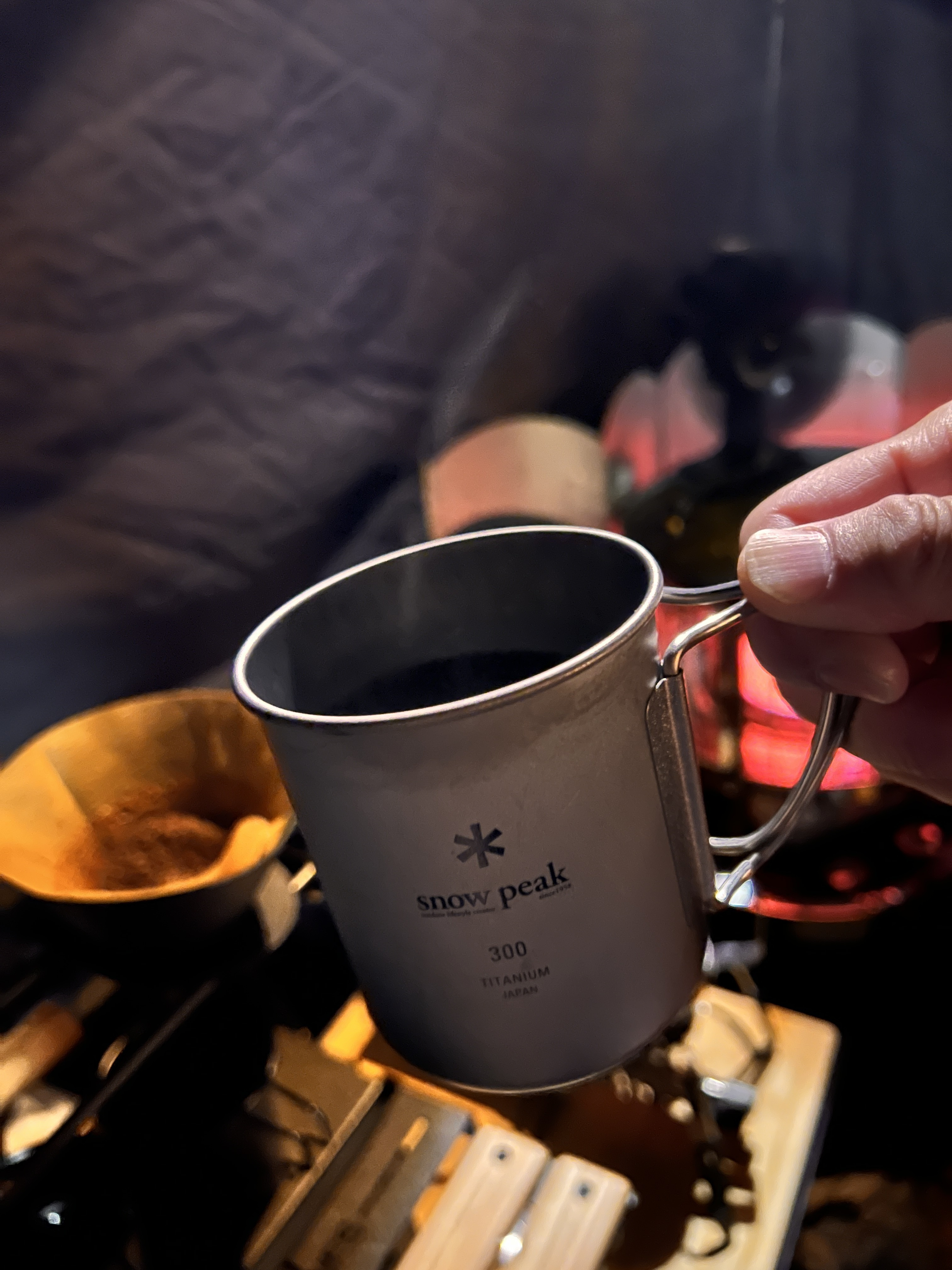 ホントは外で焚き火しながら