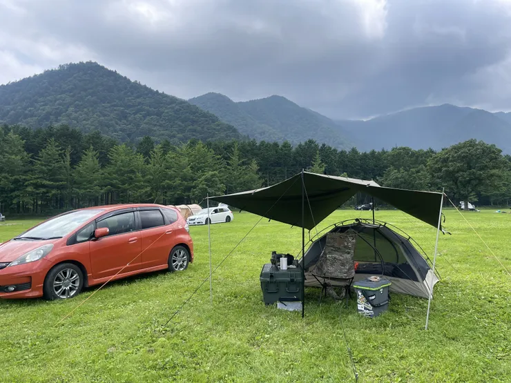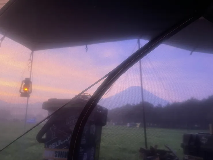 富士山は設営している時〜泥酔して眠こけるまでは全く見えなかったですが、夕方には照らされたシルエットでハッキリバッチリ見えました。