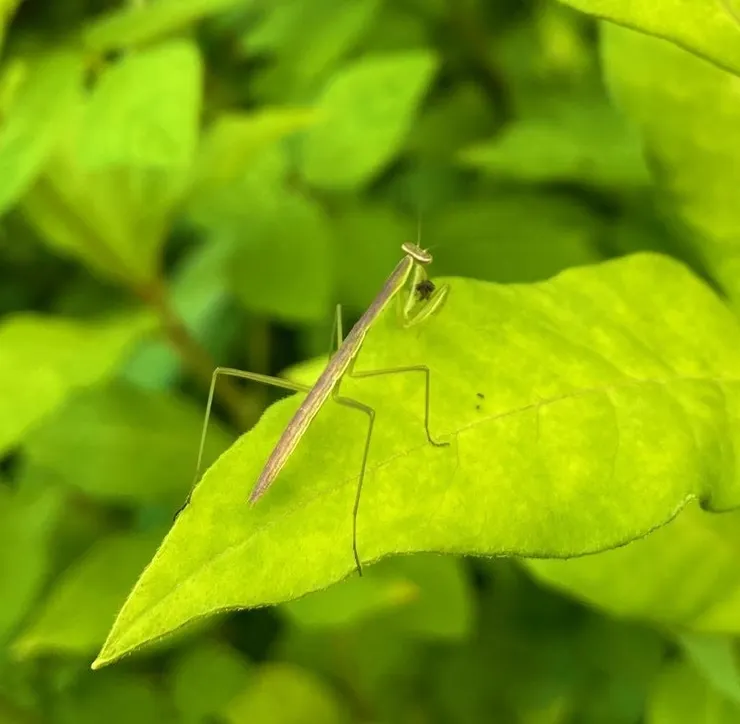写真の虫さんは、『アカスジキンカメムシ』、『カマキリ(赤ちゃん)』、『ビロードスズメ(多分)』です!