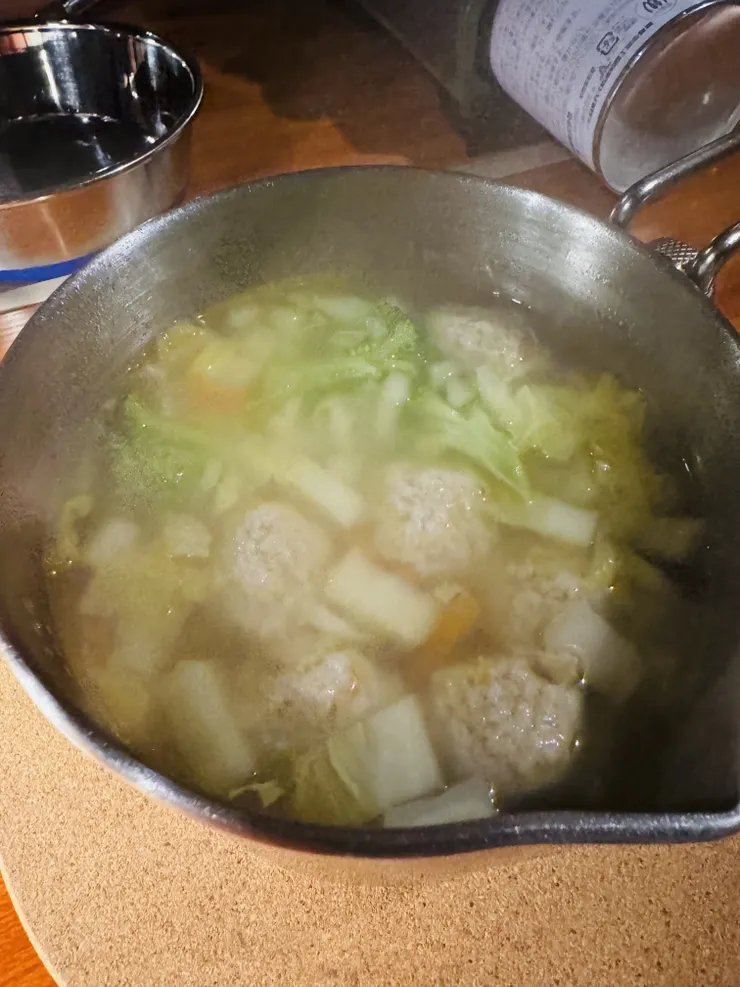 写真のスープは🐶さんの野菜と肉団子のスープです