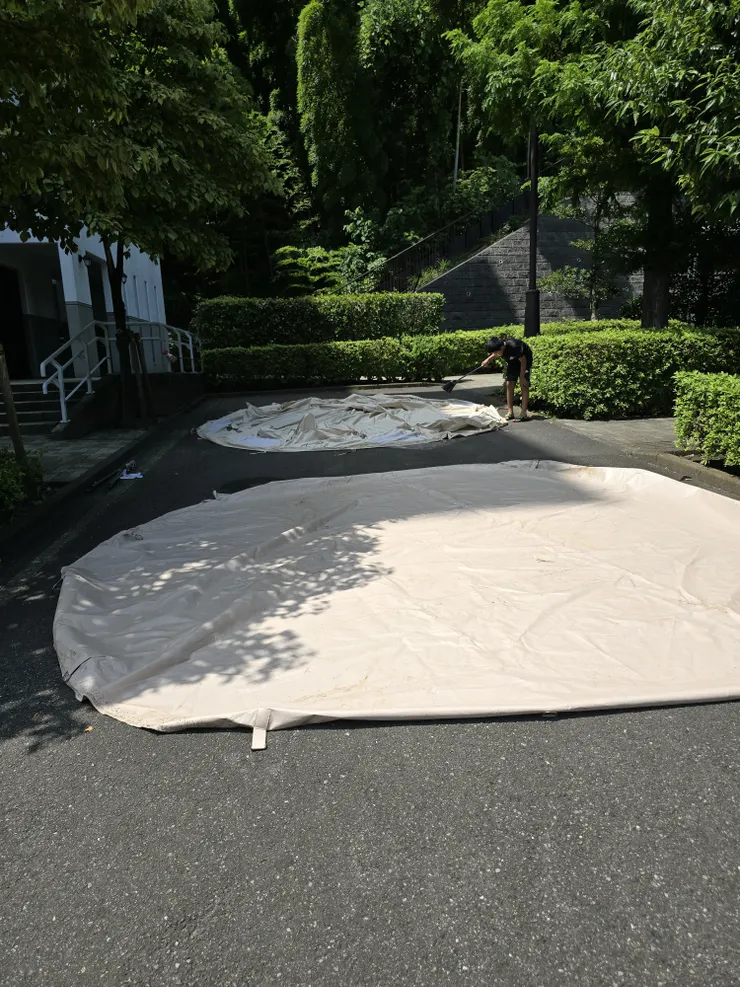 タープは割と早めに乾きましたが完了するまで4時間弱‼️