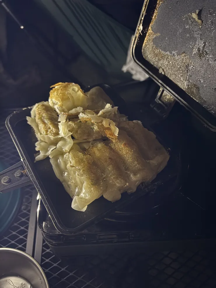 更に、今回は今までの我慢を打ち破り……キャンプ初飲酒🍶´-やってやりました!!チルド餃子、おでんとスパークリング日本酒が合う~🤤