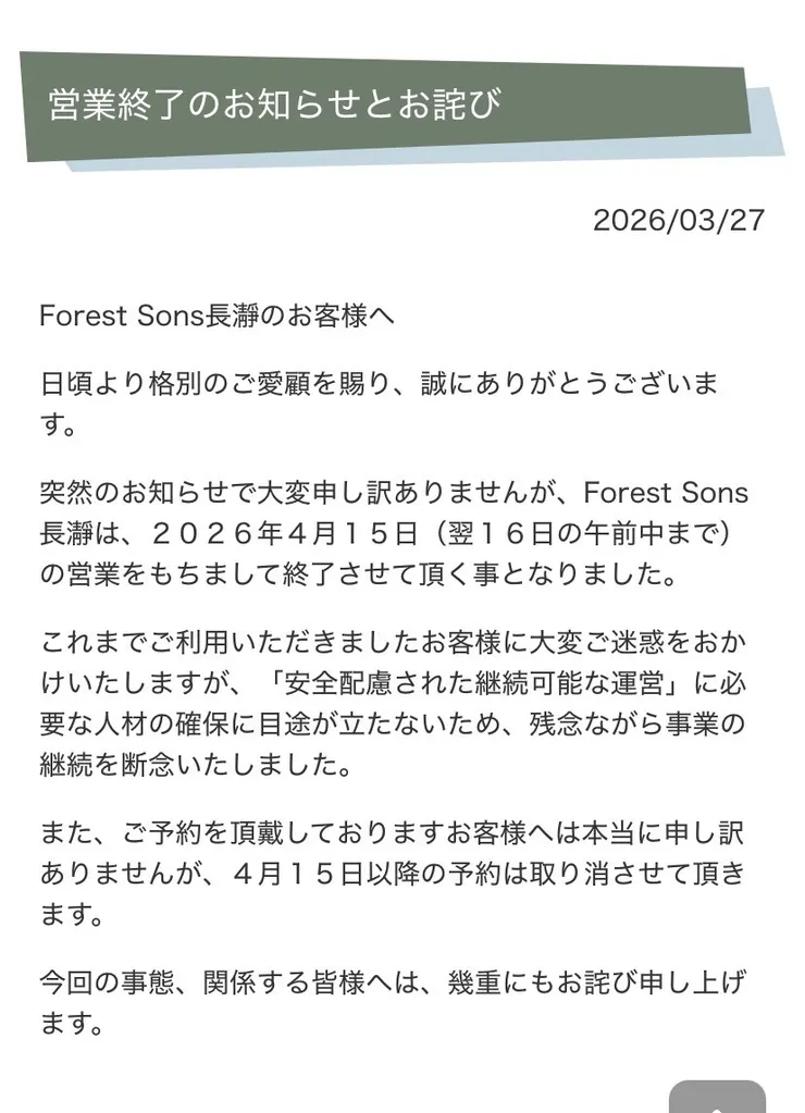 投稿を表示人が確保できなくて事業を畳むというのは、ままあることですねぇ。