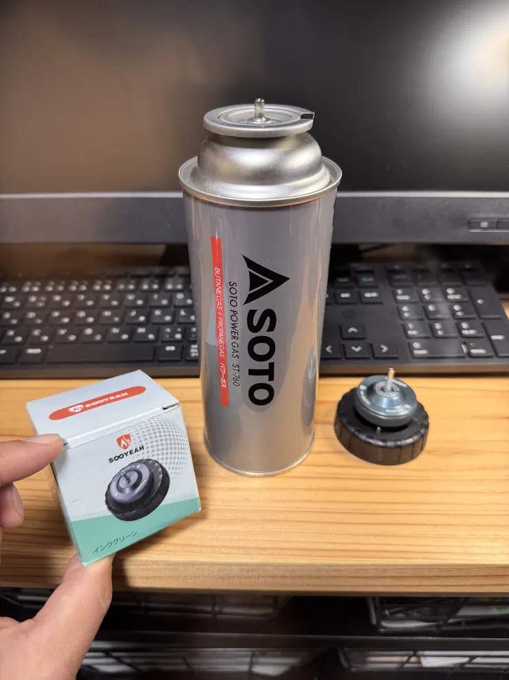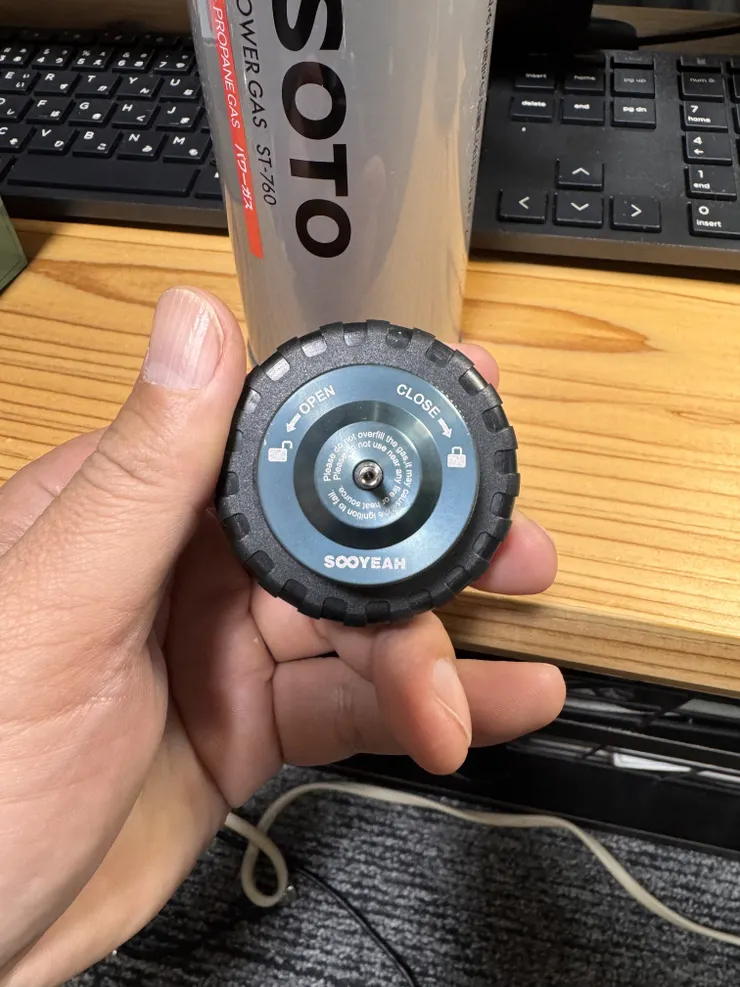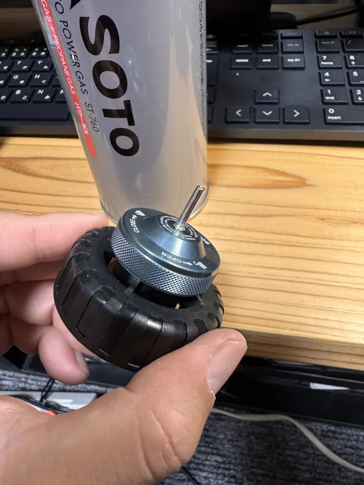 ついでの投稿ですが、右も左も分からず購入したはいいけど、バーナーの燃料を入れようとCB缶を充てるが。( '-' )....シュー....入らない。