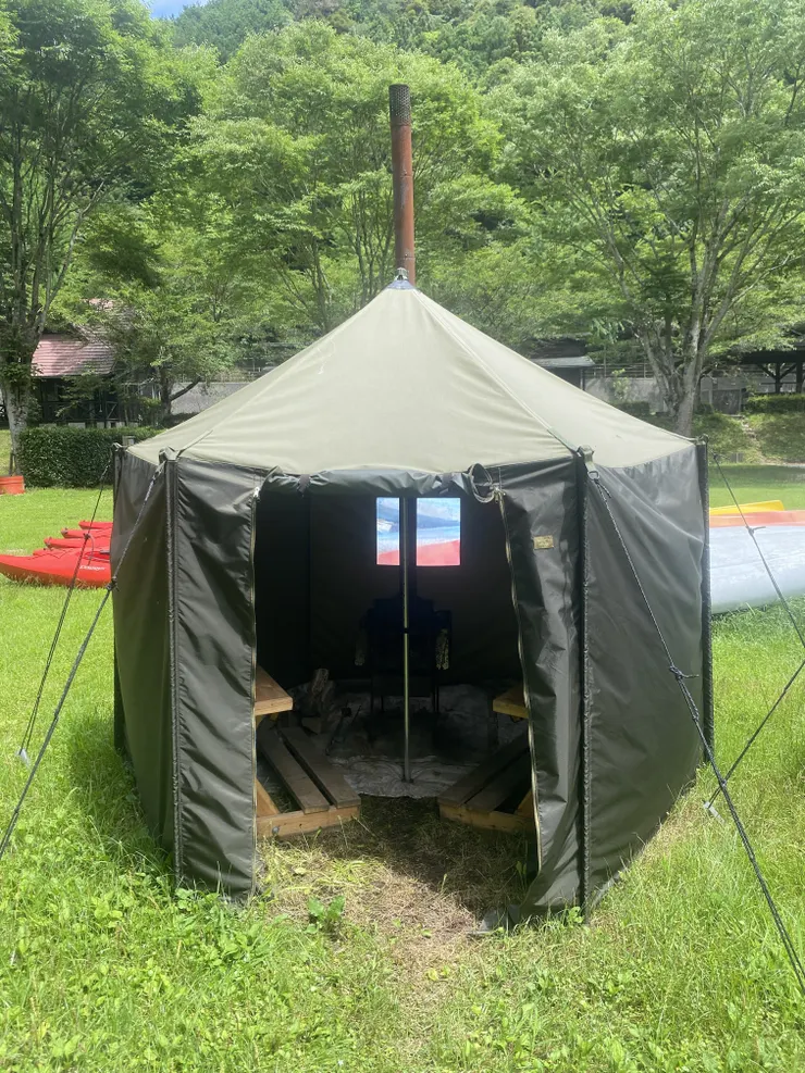常設のテントサウナがあります。