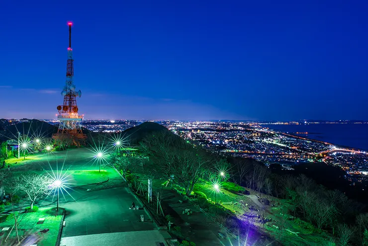 3枚目は山頂から望遠で見た様子、2枚目は湘南平の現場写真になります。