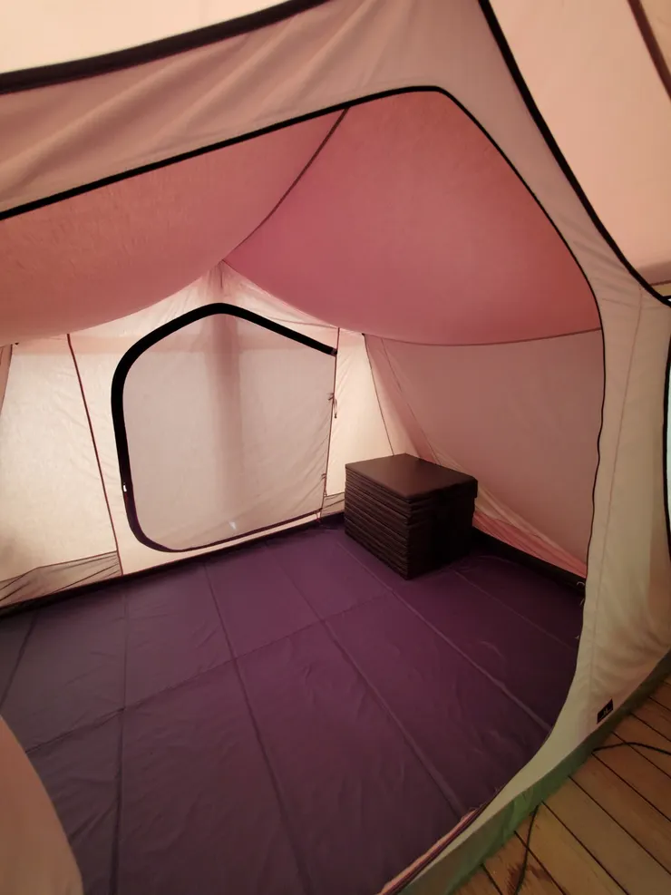 テントはリビング部分と寝室が分かれている2ルームテントなので広々お使いいただけます。