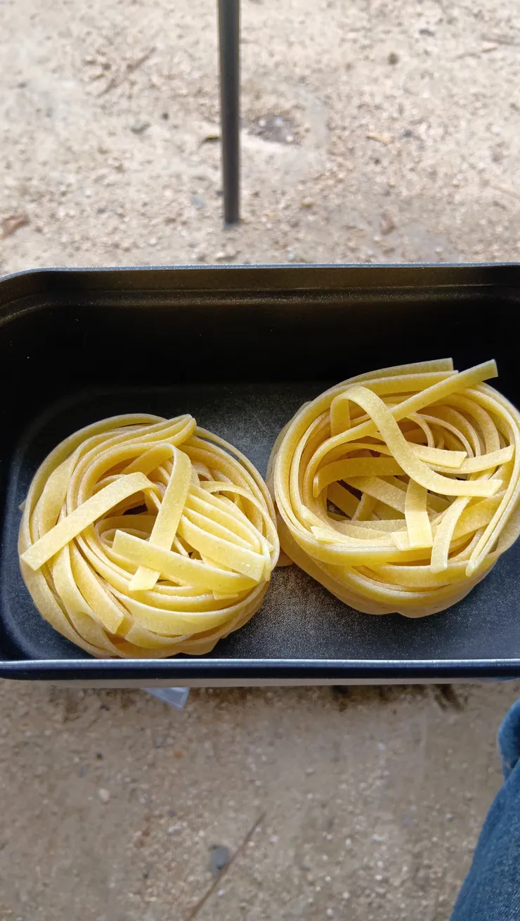 特にフィットチーネは、レギュラーサイズのメスティンでそのまま茹でられるので重宝してます。