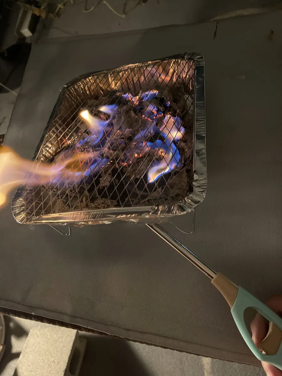 火がめっちゃつきづらい。。一生懸命斜めにして頑張りました。