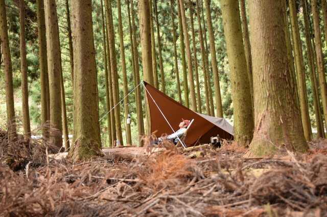 この日のキャンパーは前述の人と私の二組だけで、彼は1段下のフリーサイトでタープ無し、テントのみ泊でした。きっと彼のサイトだと風当たりが強くないだろうと思いながらの設営~キャンプでした(笑。