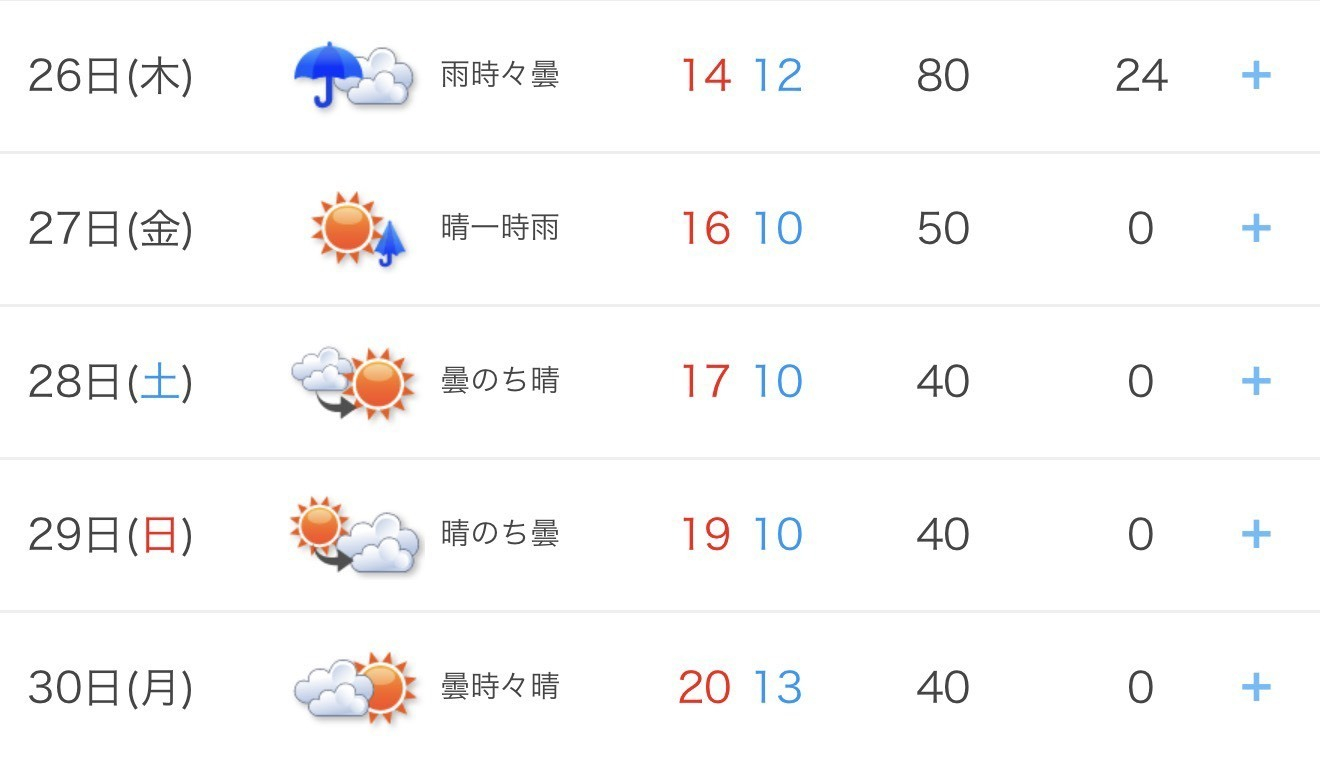 雨予報だった週末の天気が晴れ予報に変わりました☀️