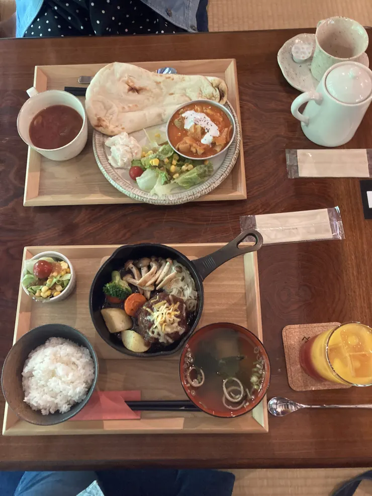 それから原始村ではランチにジビエ料理も食べられます。鹿肉のハンバーグ美味しかったです。