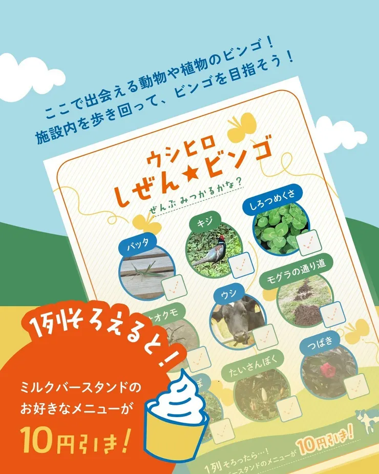 ウシノヒロバで見つかる生き物や植物を探して、ビンゴをそろえよう🦋