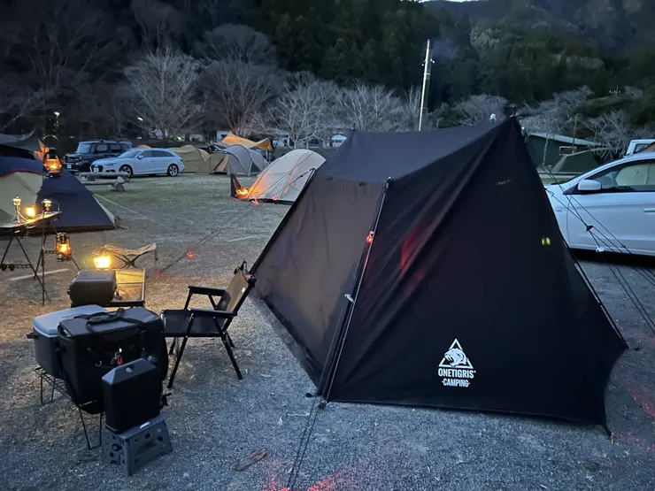 テントの前をフルオープンで丁度良い位の暖かさでした。灯油ストーブは朝だけ使いました。