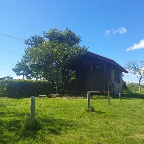 設備: キャビン(約9.5畳、エアコン、照明、コンセント付き)、屋根付きウッドデッキ、テントタープ設置スペース(6m×9m)