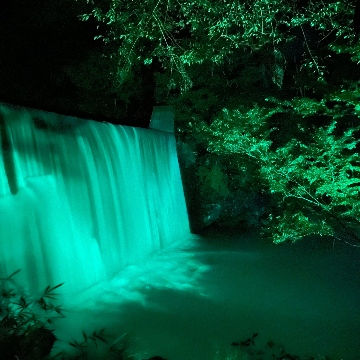 投稿を表示キャンプ場に滝のライトアップは良いですね😍