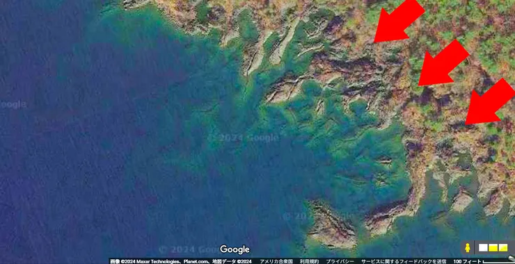 衛星写真では、本栖湖に溶岩が浸入した後がしっかり解ります。