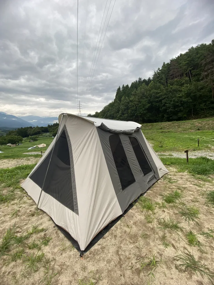 我々は、地面が緩くて緩くて、タープ用のペグが夜中に何回も風に煽られて抜けました!