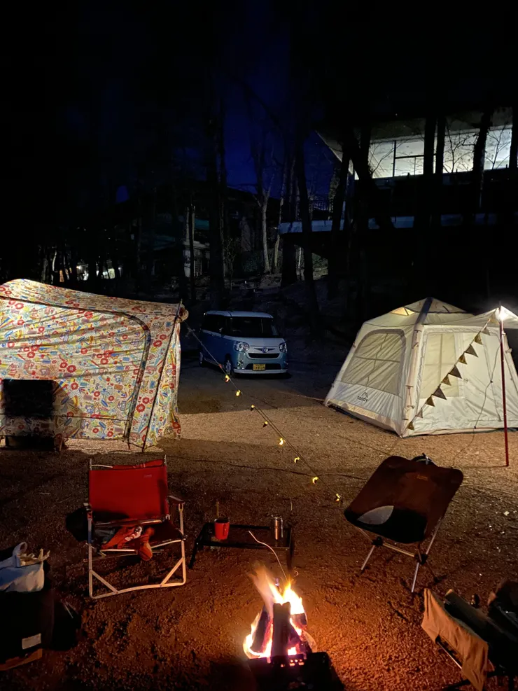 テーブルと椅子がテントに入れ込むとかなりの存在感で、暖かくなったらテーブルも椅子もタープ下に出せるからまぁいっか😅って感じです(´˘`*)