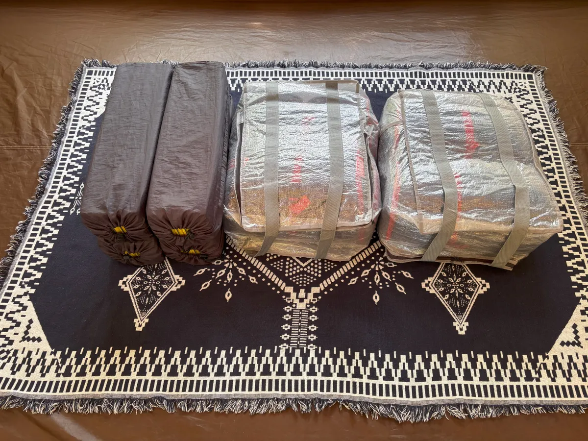 テントの中にはサーマレストマットと寝袋を人数分ご用意しております。