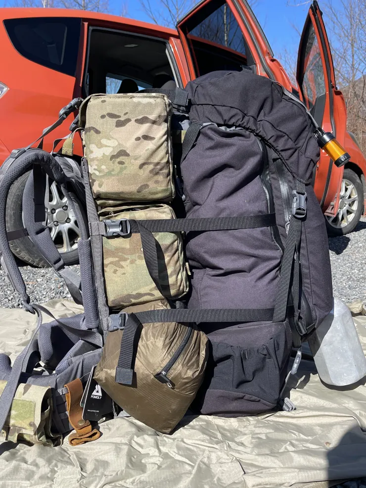 これでスプーンから薪ストーブまで全部積み込んで背負ってもラクラク移動できます。