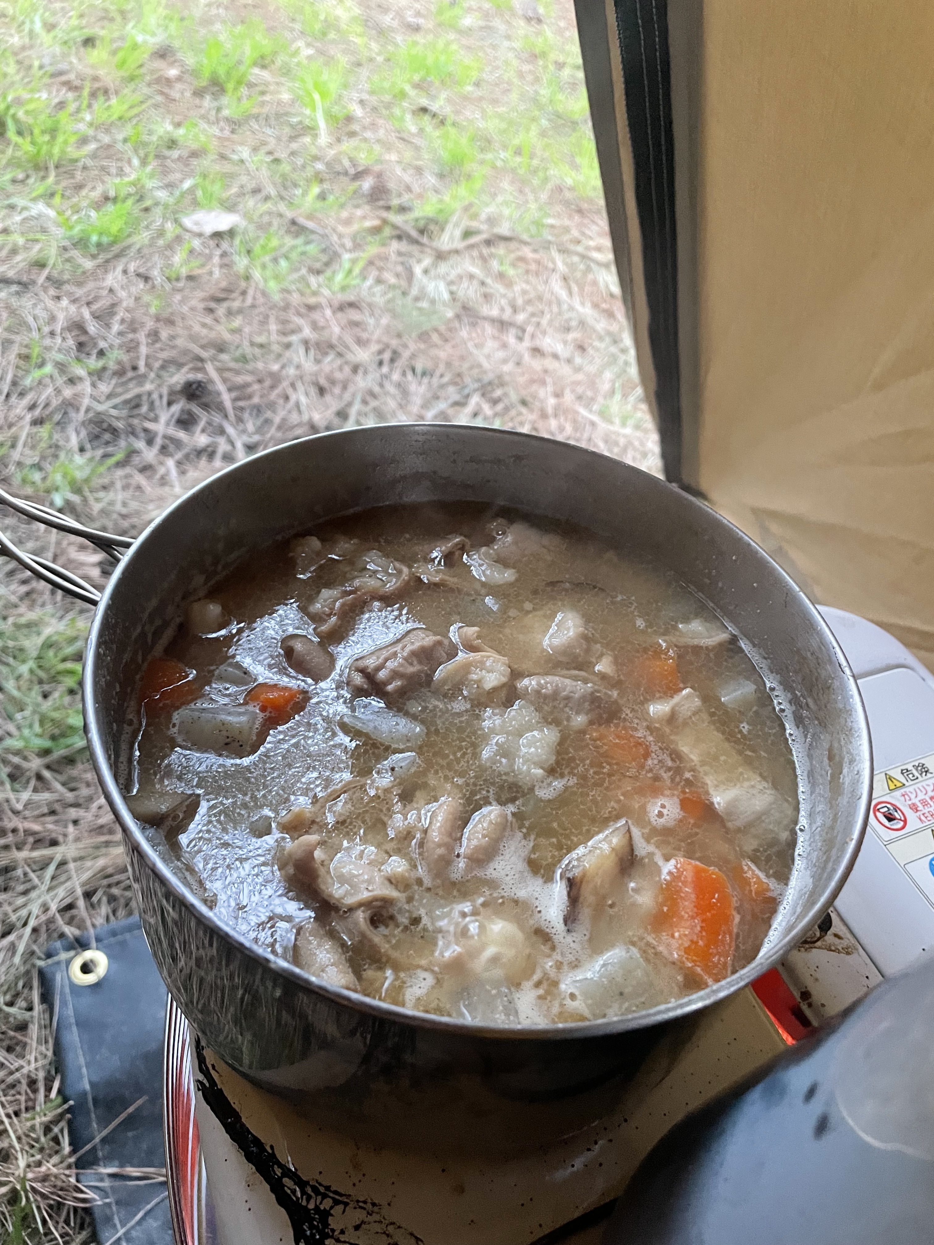 暑くない時期なら昼間から焚火をイジりつつ煮込んで楽しいし、夜に食べれば美味しいしで実に良き。
