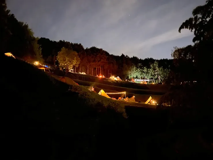 山頂フィールドのフラッグ前にある大きな直火スペースは