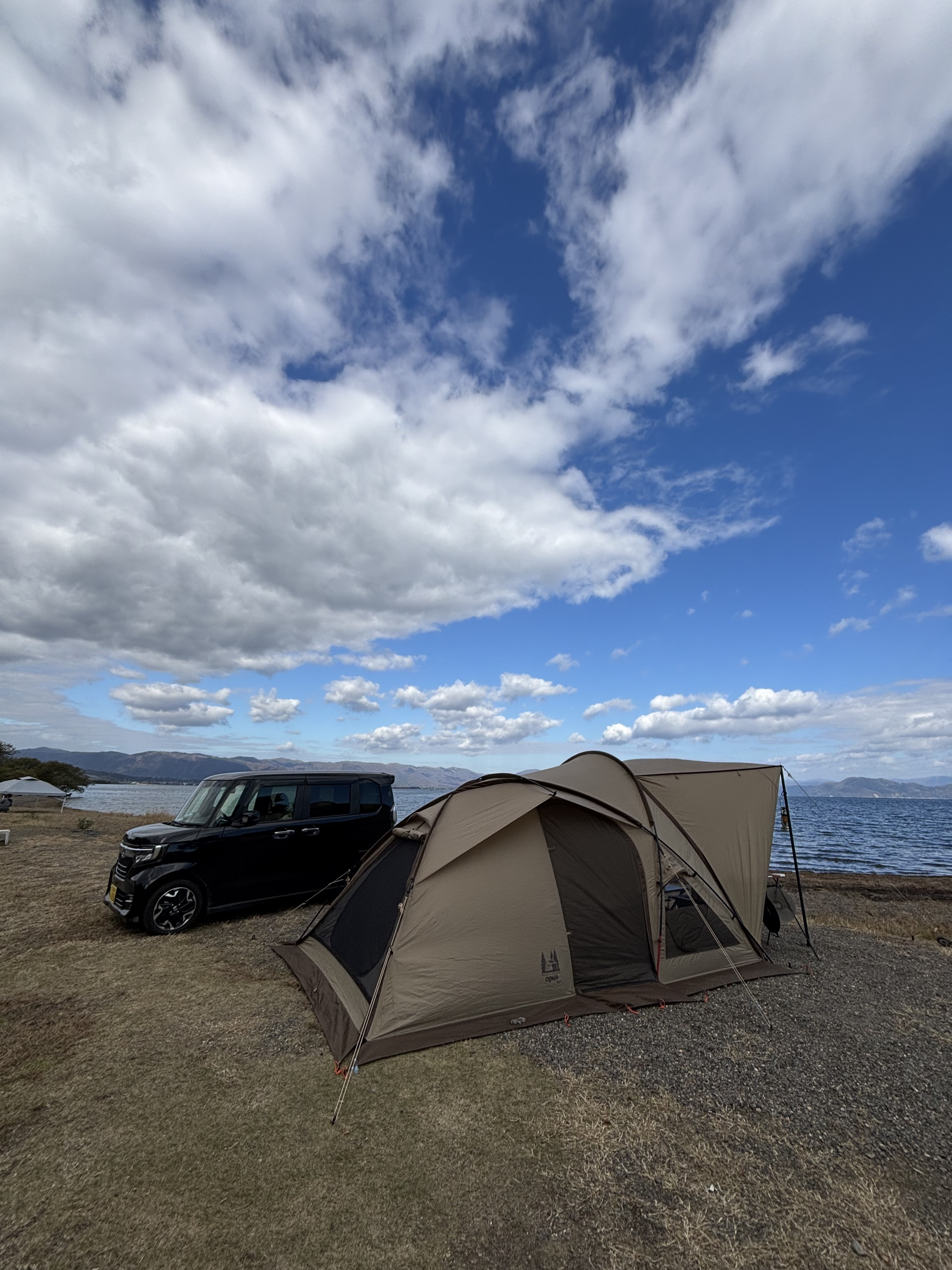 琵琶湖はネックレスチェーン計画に基づいて湖岸道路が一周していて、その沿道の随所に素敵な景観のキャンプ場がありますね😃