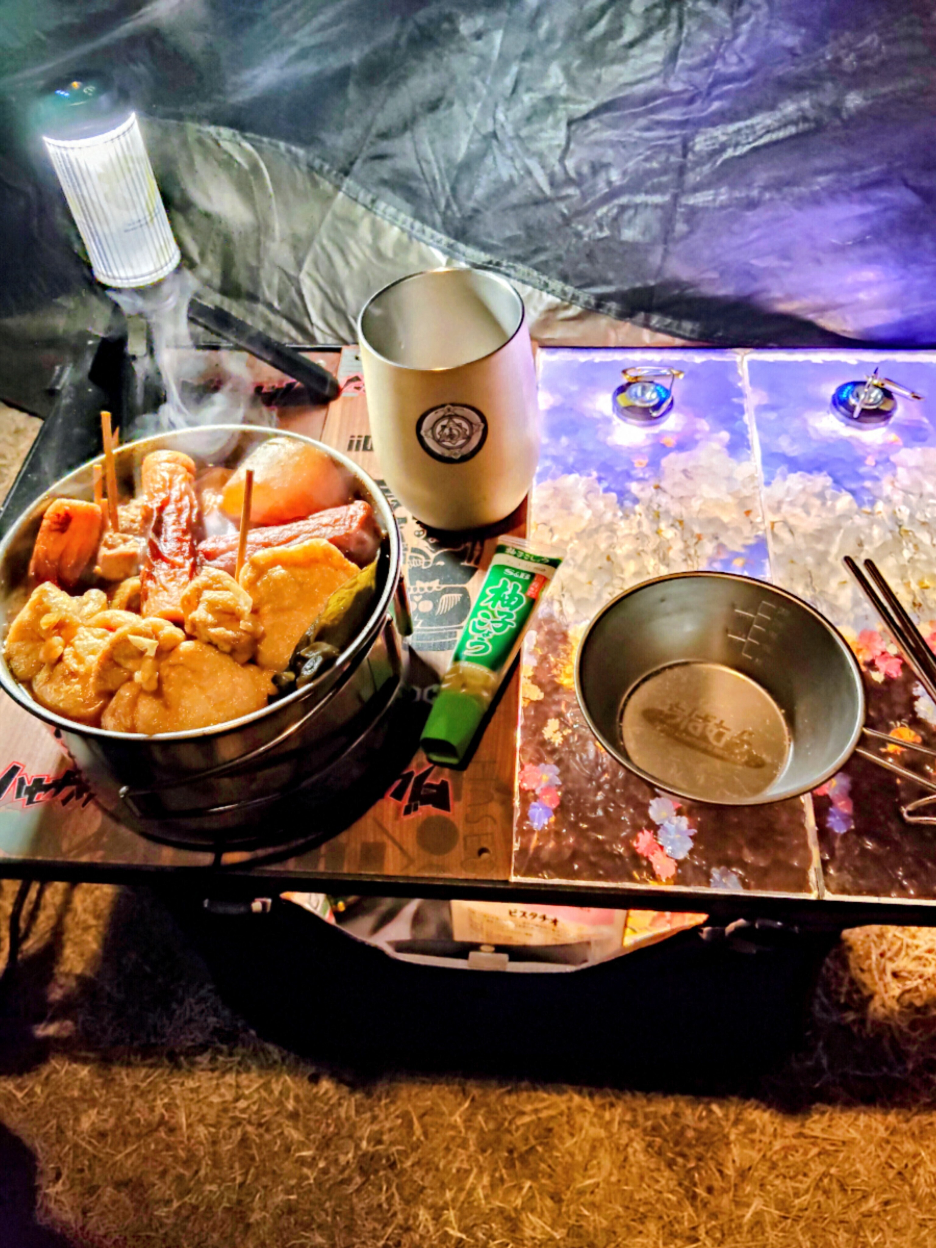 夕飯キャンプ飯はおでん🍢&エイヒレ酒🍶熱燗🎊