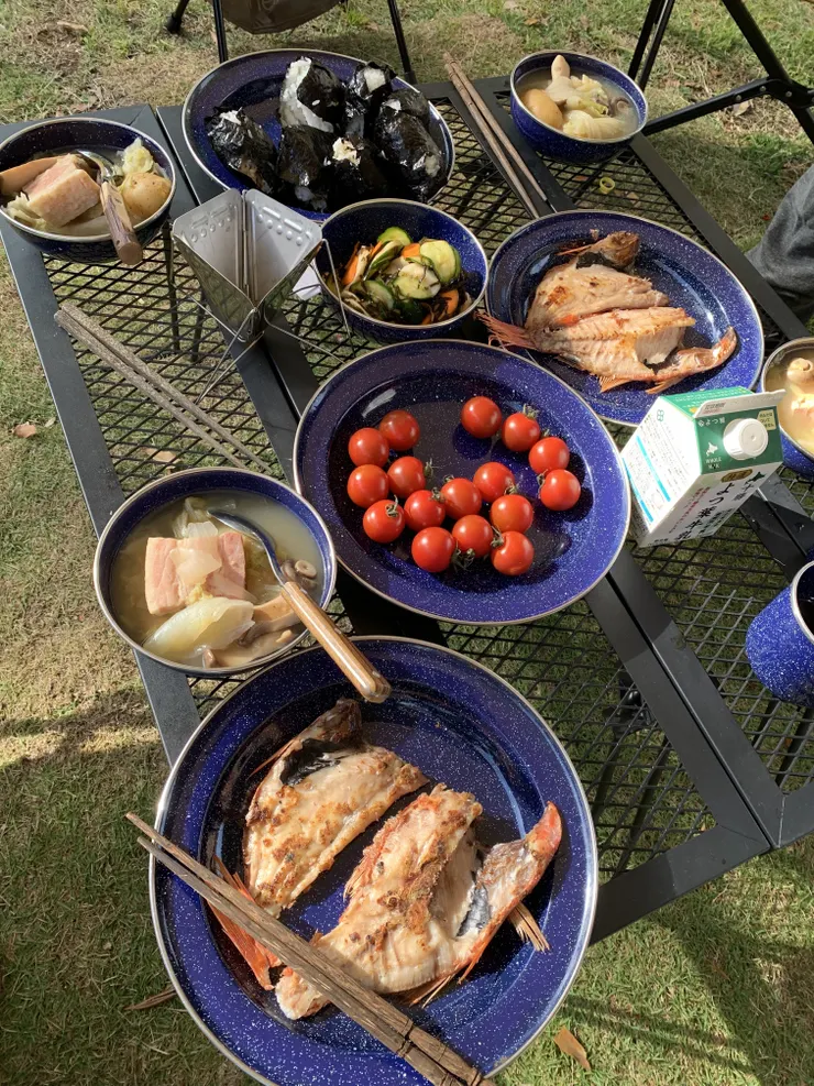 いつもピンになりがちな朝食だけど、今回はお米を炊いてみました。鷹タダで握ったおむすび、最高でした❣️伊豆と言えば金目鯛。刃物でいただきました。美味しかった😋