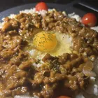 メインはコーンと玉ねぎみじん切りを入れたバターライスを炊いて牛肉を叩いて超粗挽き仕様のドライカレーを作りました。