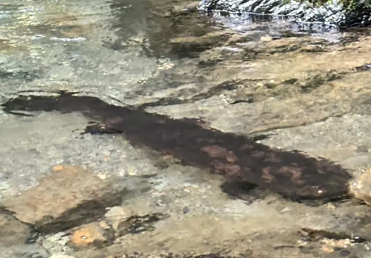 オオサンショウウオは夜行性なので、寝ぐらに帰る途中だったのかも?