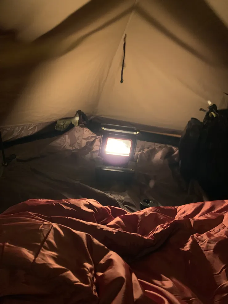 夜は1.5℃程度で、風は林が遮ってくれたので、余り寒く無かったです!チタンの薪ストーブも良い感じに焼けて来ましたね♪