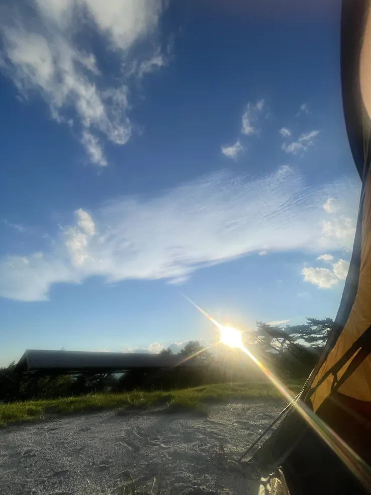 到着前までは曇りだったのに着いたらほぼ晴れ。日光強い。風は涼しいけど暑い。