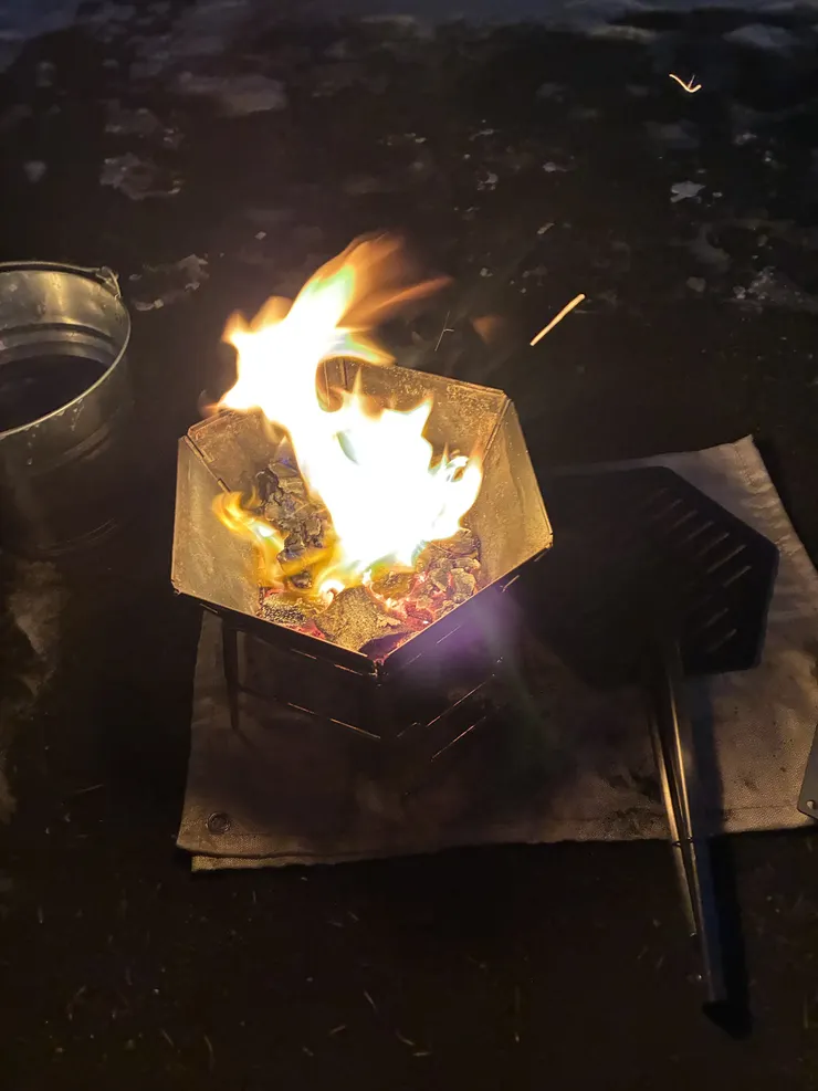 テント内は氷点下でペットボトルの水がシャーベット状になりました。私の住んでいるところではマイナス5〜6度はないので新鮮でした。