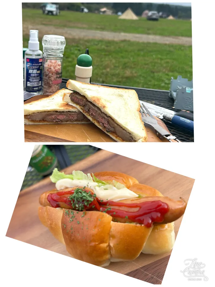 昼はステーキサンドとミニホットドック