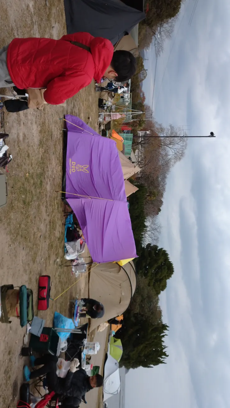 同行者のみならず、キャンプ場にひしめきあうテントを眺めながらの散歩は、さながら博覧会のようでした。