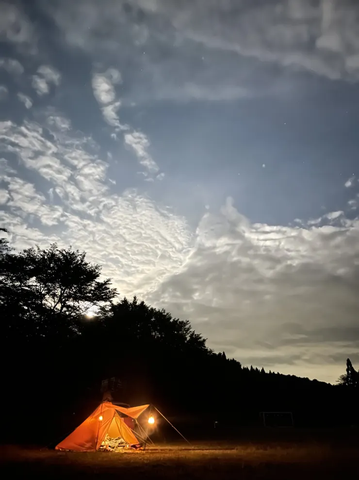 月は残念ながら雲の中でしたが、幻想的な空模様を眺めながら夜を明かしてました。