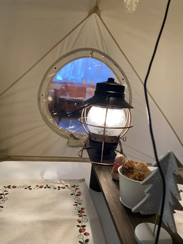投稿を表示とてもお洒落❕✨ 全体の色合いやランタンの柔らかい光が暖かい冬キャン⛺って感じで凄くイイですね。 アイテムの配置や大きさ等も勉強になります👓✨