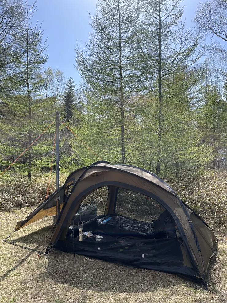 GWなのに奇跡的に予約できたソロサイトC、初めて行きましたがここも良いですね。水場もトイレもそこまで離れておらず、傾斜もそこまで無く3組限定ですが間隔は大きく空けれるので余裕のある設営が出来ました。