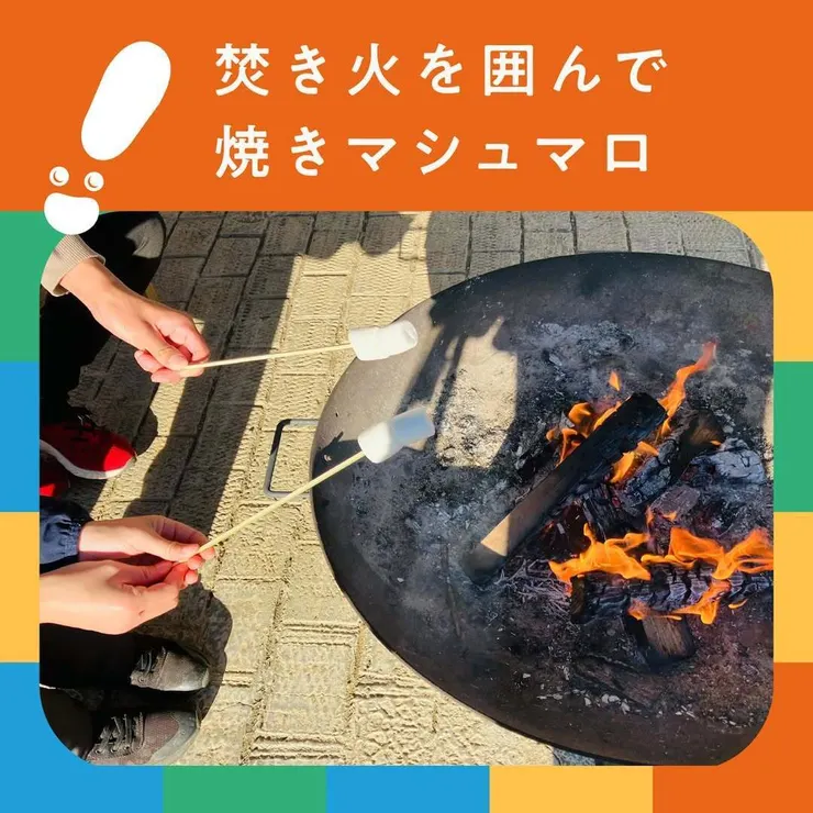最後にはみんなでつくった火を集めて、マシュマロを焼いて食べましょう!