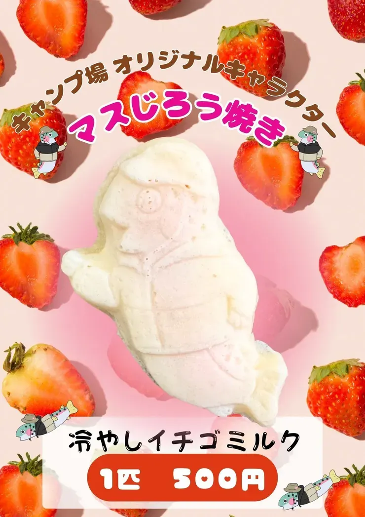 清水公園キャンプ場のオリジナルキャラクター「マスじろう」が「マスじろう焼き」になり、冷やしバージョンが登場!と、なかなか攻めてますね!マスじろう、かわいくて編集部も癒されてます(笑)。タップしてオリジナルの姿もぜひご覧ください。