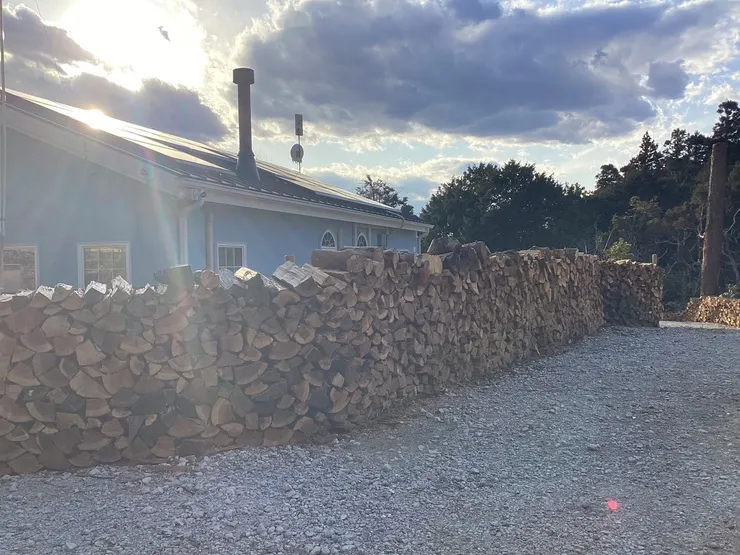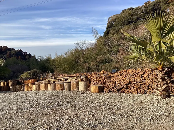 道路側の200㎡オートサイトに 薪の壁を追加しました