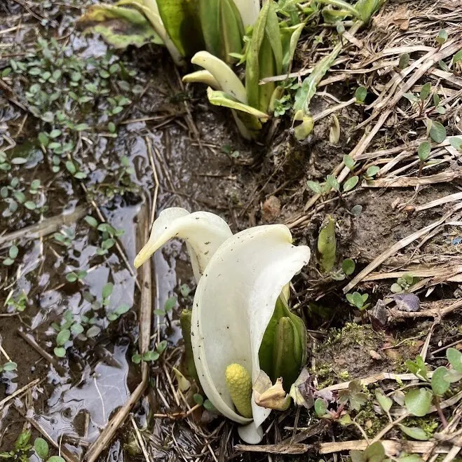 2枚目は春の雪の重みで変な形になってしまいましたがミズバショウです。