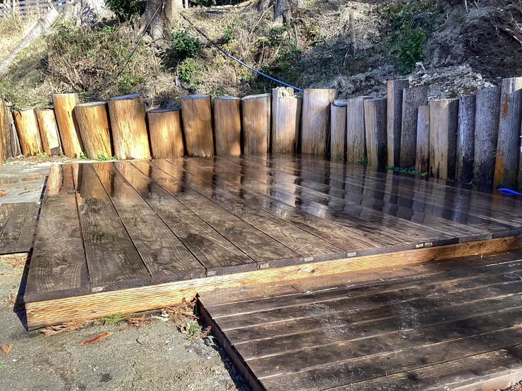 遊び心満載のオーナーの提案でこちらのウッドデッキサイトが