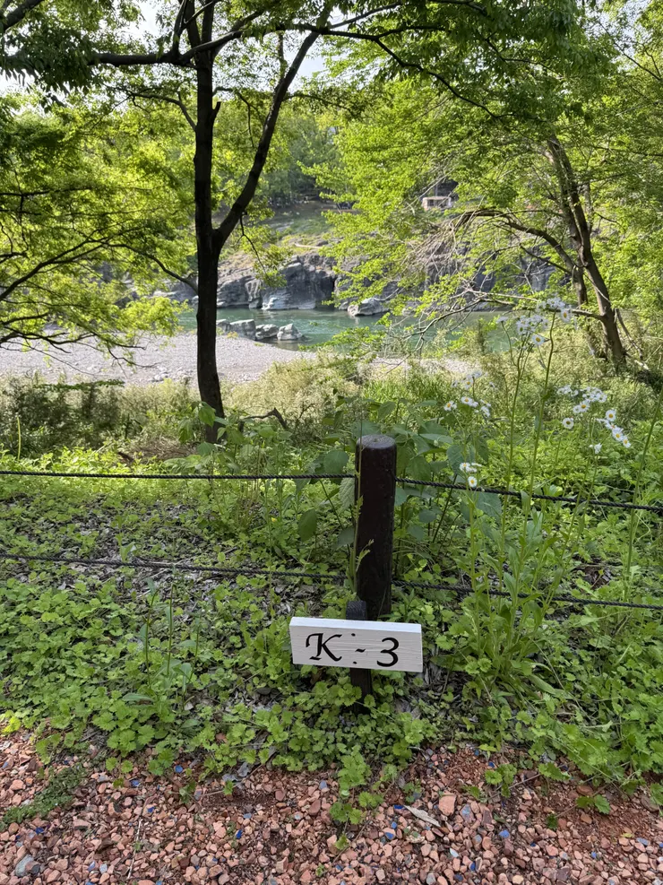 ここは長瀞オートキャンプ場の北東の端っこ、奥まっていて最近増設された男性専用ソロサイトです。荒川が見える眺望のサイトとしてはビューサイトやプレミアムサイトよりは比較的リーズナブル!