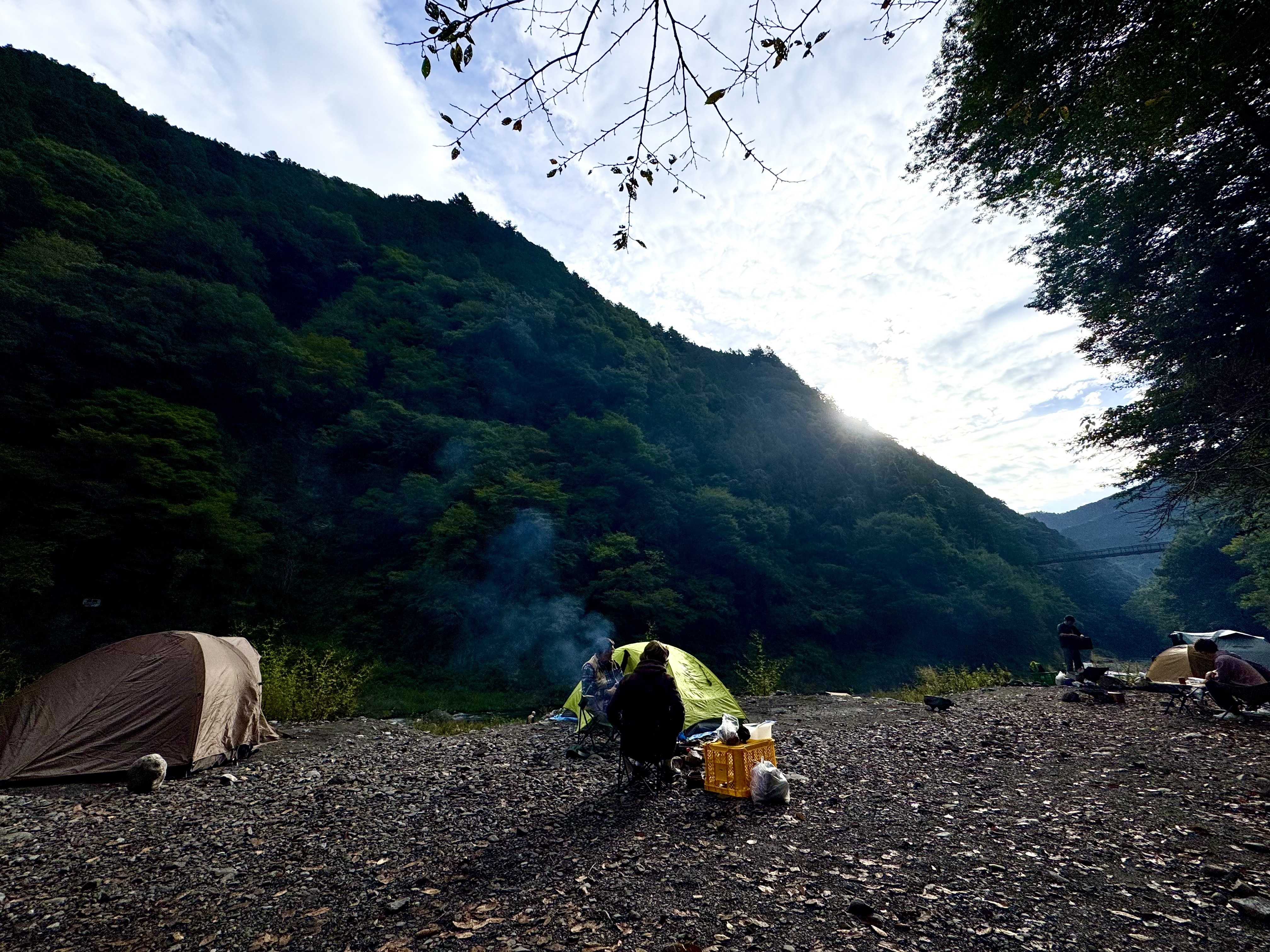 一息( ˶'-'˶) 色々苦戦したけど、隣の若めのソロキャンデビュー仲間の人と会話などしつつ楽しく一晩過ごせました✨