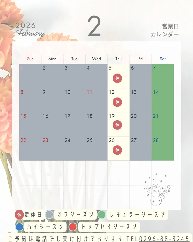 本年度(2026年)のシーズンカレンダーを公開しました。