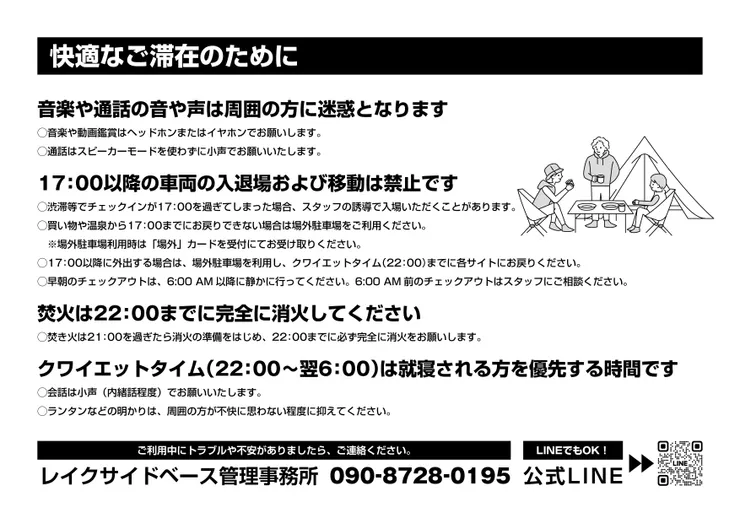 また、裏面にはよくある注意事項を「快適なご滞在のために」としてピックアップしましたので、併せてお読みいただけると幸いです。