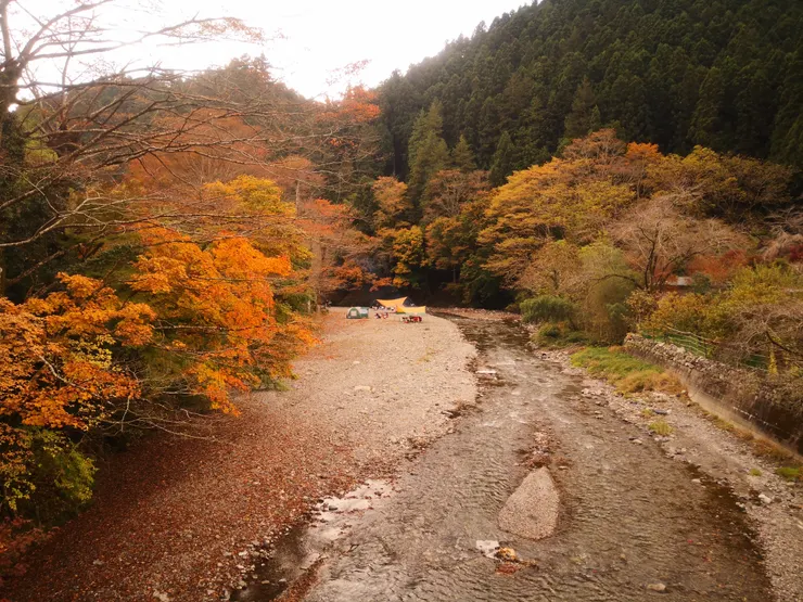 晩秋の気持ちの良い気候の中、せせらぎと鈴虫の声を聴きながら焚き火を楽しむ、
